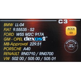 W 100% syntetyczny olej silnikowy (Mid-SAPS) specjalnie opracowany aby spełnić wymagania filtrów cząstek stałych (DPF) oraz katalizatorów trójfunkcyjnych (TWC). Do pojazdów wyposażonych w silniki Diesla z bezpośrednim wtryskiem paliwa oraz do silników benzynowych spełniających wymagania EURO IV oraz EURO V wymagających oleju klasy ACEA C3 o wysokiej lepkości wysokotemperaturowej HTHS. Przystosowany do przedłużonych przebiegów międzywymianowych.